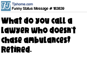 X is What do you call a lawyer who doesn't chase ambulances? Retired.