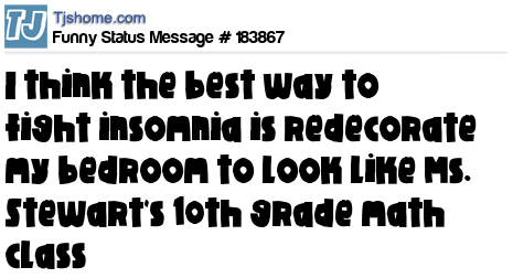 X says I think the best way to fight insomnia is redecorate my bedroom to look like Ms. Stewart's 10th grade math class
