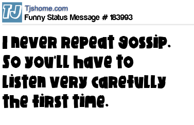 - # 112174 I don't repeat gossip so listen closely the first time!