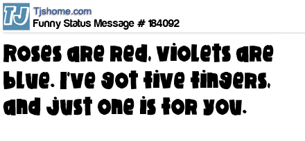 - # 23485 Roses are red. Violets are blue. She has 5 fingers and the middle one's for you.