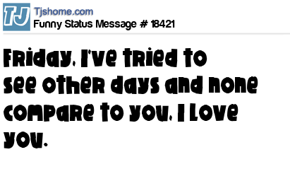 X Friday, I've tried to see other days and none compare to you, I love you.