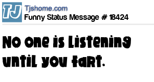 - # 36871 ...so you're talking and you feel like no one's listening at all? rip off a good loud fart. that'll get everybody's attention!
