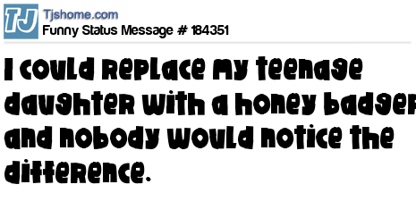 X says I could replace my teenage daughter with a honey badger and nobody would notice the difference.