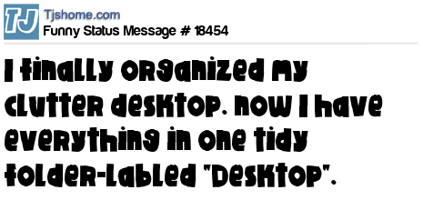 X says I finally organized my clutter desktop. now I have everything in one tidy folder-labled "Desktop".