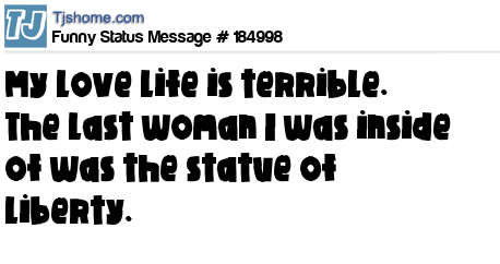 X is My love life is terrible. The last woman I was inside of was the statue of liberty.