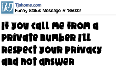 - # 208511 If you call me from a private number, I'll respect your privacy and not answer.