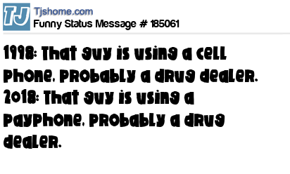 - # 150958 Using a cellphone in 90's: "he's prob a drug dealer" Using a payphone today: "he's prob a drug dealer"