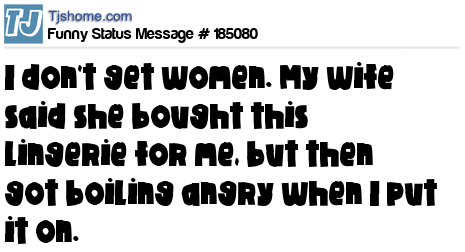 - # 199485 My wife said she bought the lingerie for me, but then got upset when I put it on... I just don't get women.