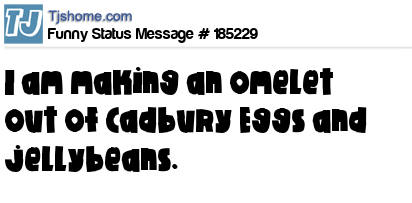 X says I am making an omelet out of Cadbury Eggs and jellybeans.