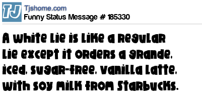 X says A white lie is like a regular lie except it orders a grande, iced, sugar-free, vanilla latte, with soy milk from Starbucks.