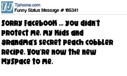 X says Sorry Facebook ... you didn't protect me, my kids and grandma's secret peach cobbler recipe. You're now the new MySpace to me.