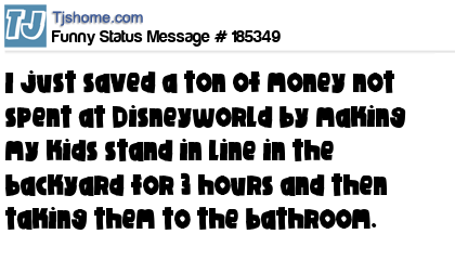 X says I just saved a ton of money not spent at Disneyworld by making my kids stand in line in the backyard for 3 hours and then taking them to the bathroom.