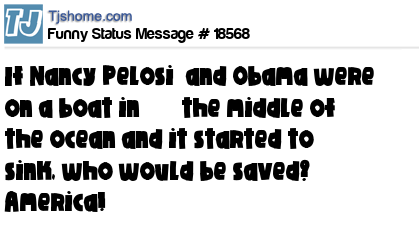 X If Nancy Pelosi and Obama were on a boat in the middle of the ocean and it started to sink, who would be saved? America!