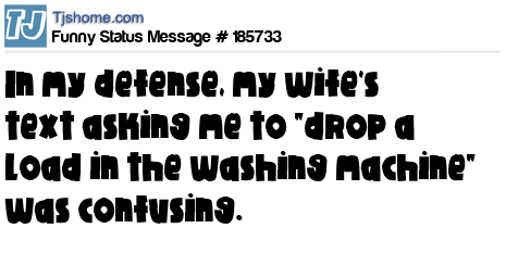 X In my defense, my wife's text asking me to "drop a load in the washing machine" was confusing.