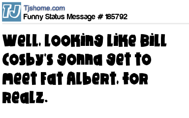 X says Well, looking like Bill Cosby's gonna get to meet Fat Albert, for realz.