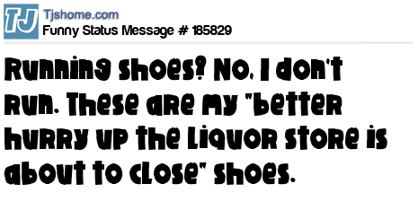 X says Running shoes? No, I don't run. These are my "better hurry up the liquor store is about to close" shoes.