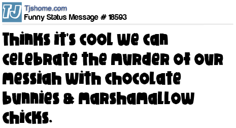 X thinks it's cool we can celebrate the murder of our messiah with chocolate bunnies & marshamallow chicks.