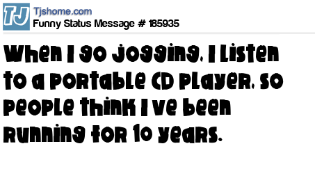 X says When I go jogging, I listen to a portable CD player, so people think I’ve been running for 10 years.