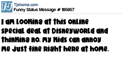 X says I am looking at this online special deal at Disneyworld and thinking no, my kids can annoy me just fine right here at home.