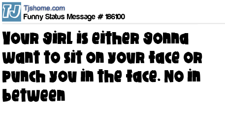 X says Your girl is either gonna want to sit on your face or punch you in the face. No in between