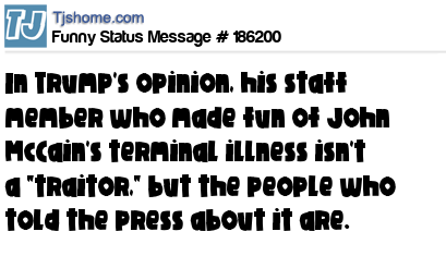 X says In Trump's opinion, his staff member who made fun of John McCain's terminal illness isn't a "traitor," but the people who told the press about it are.
