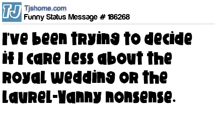 X says I've been trying to decide if I care less about the royal wedding or the Laurel-Yanny nonsense.