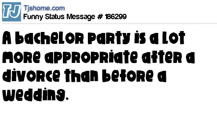 X says A bachelor party is a lot more appropriate after a divorce than before a wedding.