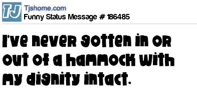 X says I've never gotten in or out of a hammock with my dignity intact.