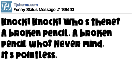 X is Knock! Knock! Who’s there? A broken pencil. A broken pencil who? Never mind, it’s pointless.