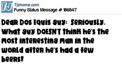 - # 70739 Amazingly after a dozen bottles of Dos Equis EVERY man thinks he is the "Most Interesting Man in the World."