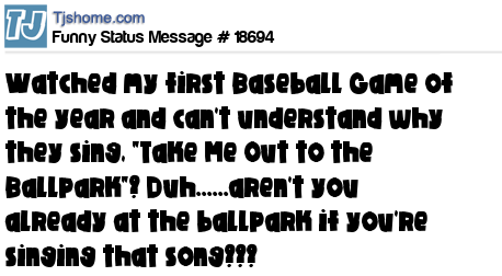 X is Watched my first Baseball Game of the year and can't understand why they sing, "Take Me Out to the Ballpark"? Duh......aren't you already at the ballpark if you're singing that song???