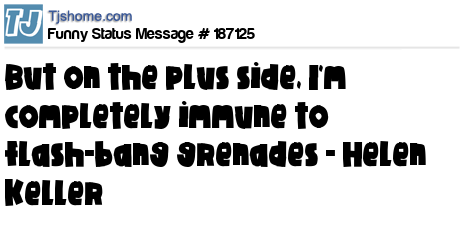 X says But on the plus side, I'm completely immune to flash-bang grenades - Helen Keller
