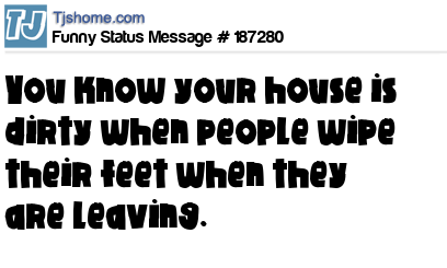 X is You know your house is dirty when people wipe their feet when they are leaving.