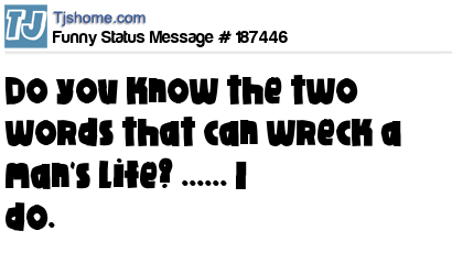 - # 187444 Do you know the two words that can wreck a man's life?......... I do.