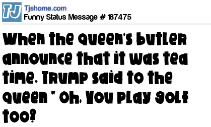 X is When the queen's butler announce that it was tea time. Trump said to the queen " Oh, You play golf too?