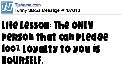 X is Life Lesson: The ONLY person that can pledge 100% loyalty to you is YOURSELF.