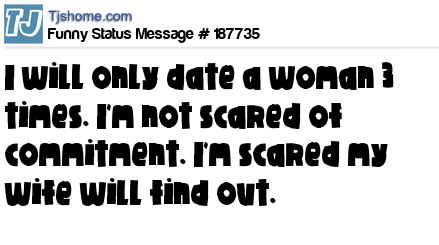 X is I will only date a woman 3 times. I'm not scared of commitment. I'm scared my wife will find out.
