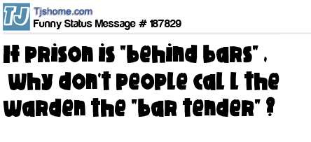 X says if prison is "behind bars" , why don't people cal l the warden the "bar tender" ?