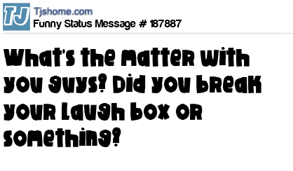 X is What's the matter with you guys? Did you break your laugh box or something?