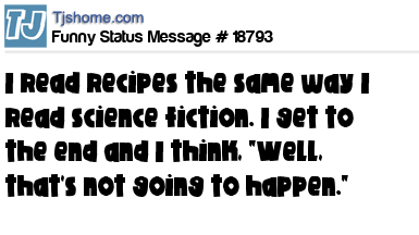 X says I read recipes the same way I read science fiction. I get to the end and I think, "Well, that's not going to happen."