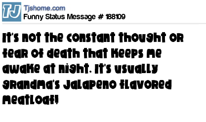 X says It's not the constant thought or fear of death that keeps me awake at night. It's usually grandma's Jalapeno flavored meatloaf!