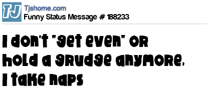 X says I don't "get even" or hold a grudge anymore, I take naps