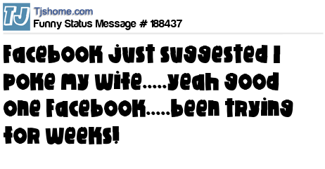 - # 22412 Facebook has just suggested I poke my wife . . . Yeah good one facebook . . . Been trying for weeks . .