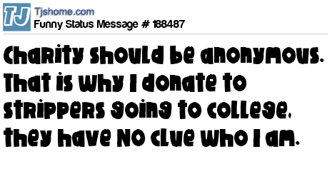 X says Charity should be anonymous. That is why I donate to strippers going to college, they have NO clue who I am.