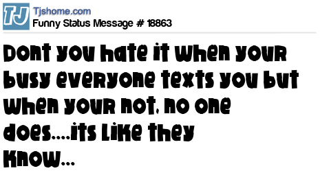 - # 120483 When I'm bored, nobody texts me, but as soon as I'm busy, BAM... still nobody texts me.