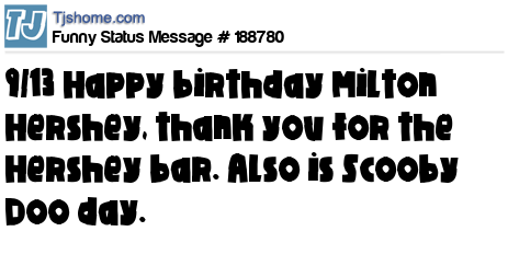 X is 9/13 Happy birthday Milton Hershey, thank you for the Hershey bar. Also is Scooby Doo day.
