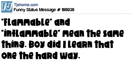 X says "Flammable" and "inflammable" mean the same thing. Boy did I learn that one the hard way.