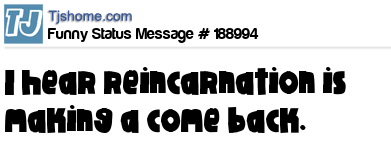 - # 177936 If there is such a thing as reincarnation, please let me come back as anything but a middle-aged woman upset over guys who dump her after 3 days.
