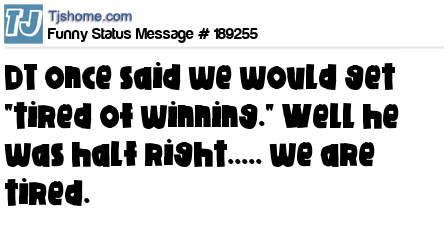 X is DT once said we would get "tired of winning." Well he was half right..... we are tired.