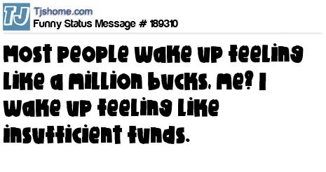 - # 176535 Some people wake up and feel like a million bucks. Me? I wake up feeling like insufficient funds.